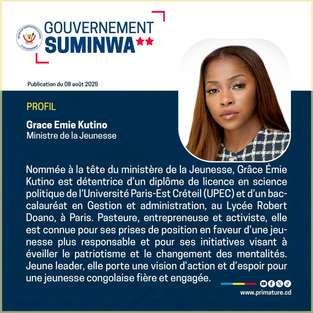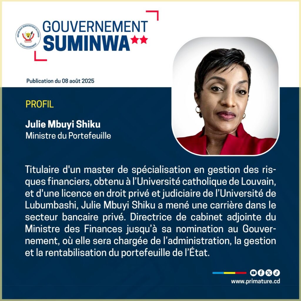 Parcourez ces profils pour mieux connaître celles et ceux qui œuvrent aux côtés de la Première Ministre, Judith Suminwa Tuluka, pour un Congo uni, fort et prospère.