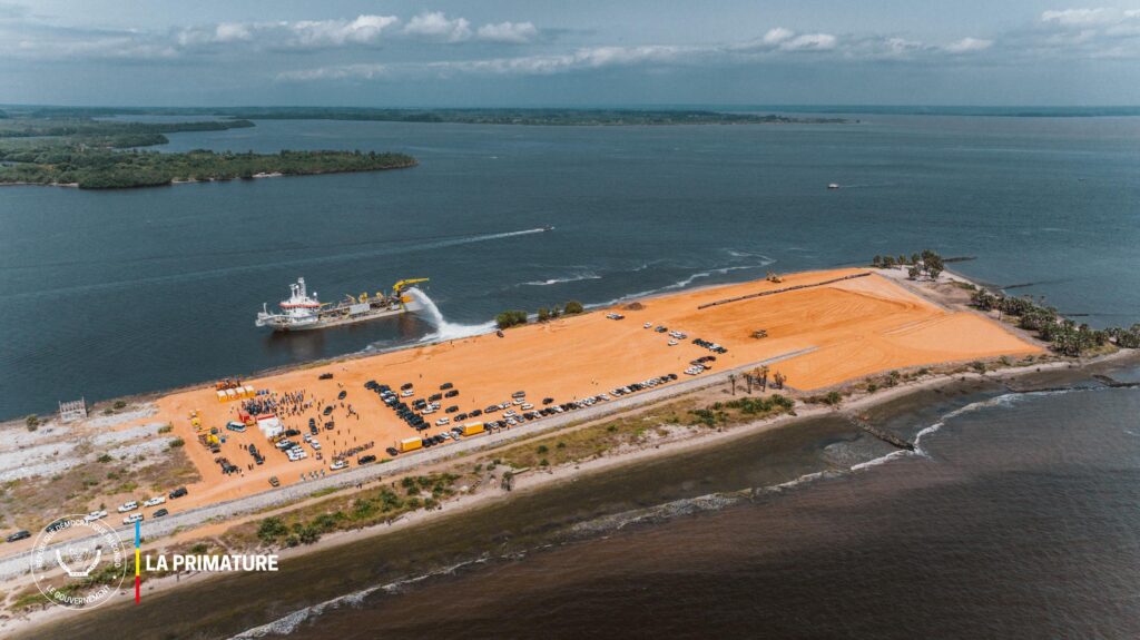 La visite s’est poursuivie par des explications détaillées sur les enjeux hydrologiques du site, notamment en ce qui concerne l’embouchure du fleuve Congo. La Cheffe du Gouvernement a également inspecté les travaux de lutte anti-érosive destinés à protéger le littoral contre les phénomènes d’érosion côtière, un préalable essentiel à la durabilité de la future infrastructure.