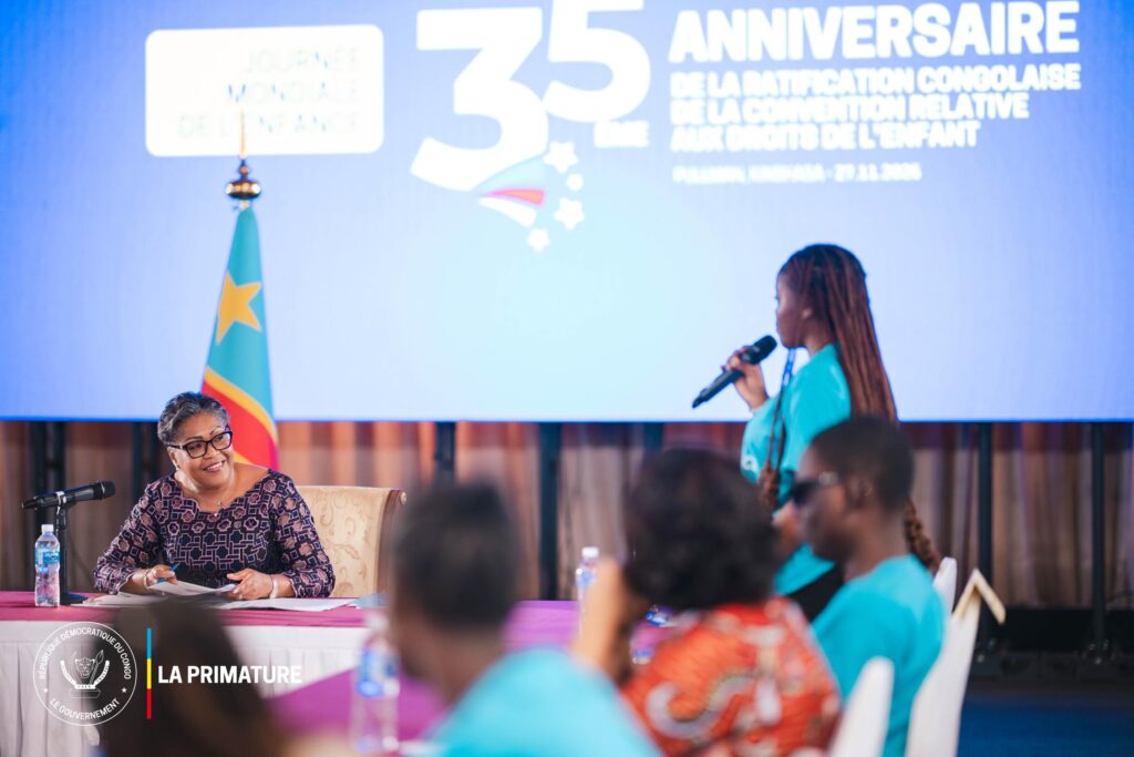 Kinshasa, 27 novembre 2025 – La République démocratique du Congo a célébré, ce jeudi, la Journée mondiale de l’enfance sous le thème national : ” Promouvoir l’inclusion des enfants dans la gestion des affaires publiques “. Pour cette édition, la Première ministre, Judith Suminwa Tuluka, et quelques membres de son Gouvernement se sont soumis à l’exercice de redevabilité, en répondant aux questions des enfants reporters issus de près de 10 provinces du pays. L’événement, organisé par le ministère du Genre, Famille et Enfant, en collaboration avec l’UNICEF, marque aussi les 35 ans de la ratification par la RDC de la Convention relative aux droits de l’enfant.